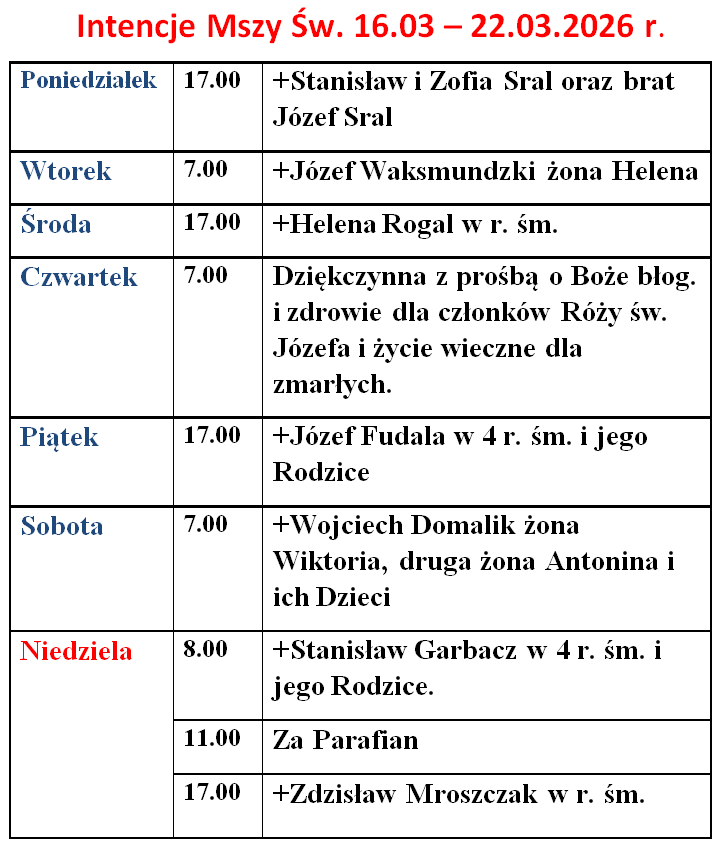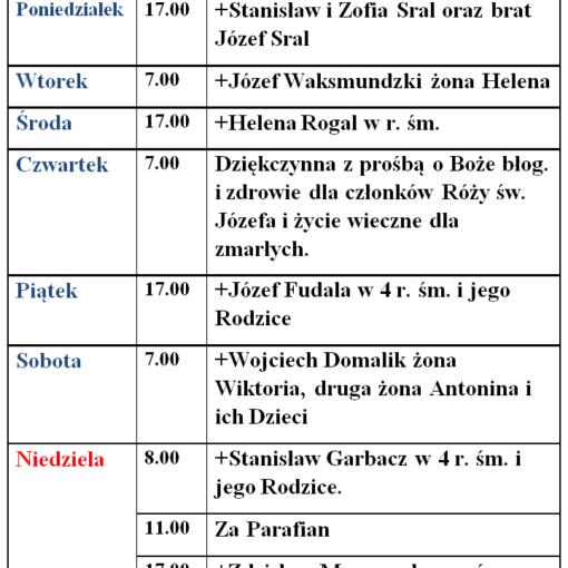Intencje Mszy św. pogrzebowych +Józef Sral s.2