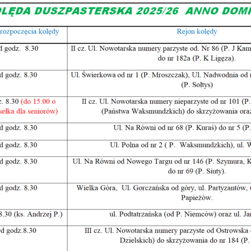 kolęda na najbliższy tydzień.