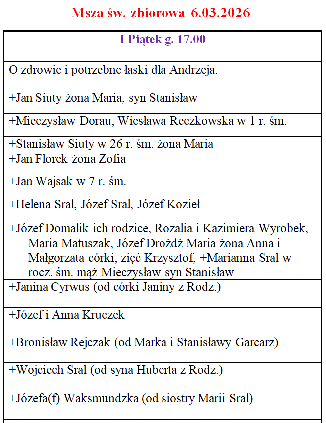 Opublikowano 21 lutego 2021 Msza św. za +majora Józefa Kurasia 27 lutego w sobotę o godz. 11.00 w naszej świątyni odbędzie się Msza św. za +majora Józefa Kurasia w 74 r. ostatniej […]