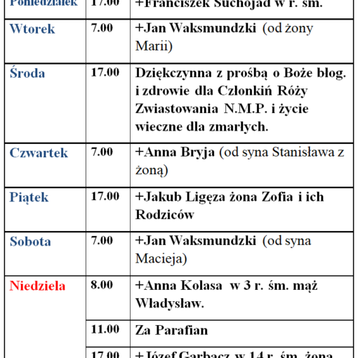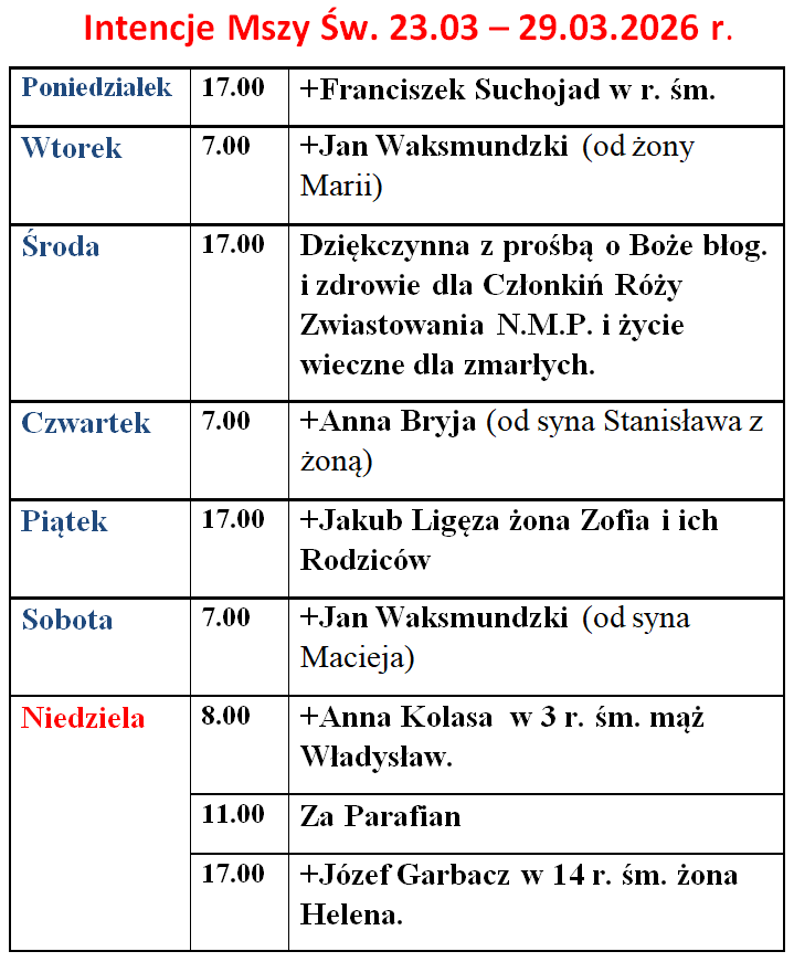 Intencje Mszy św. 23-29.03.2026