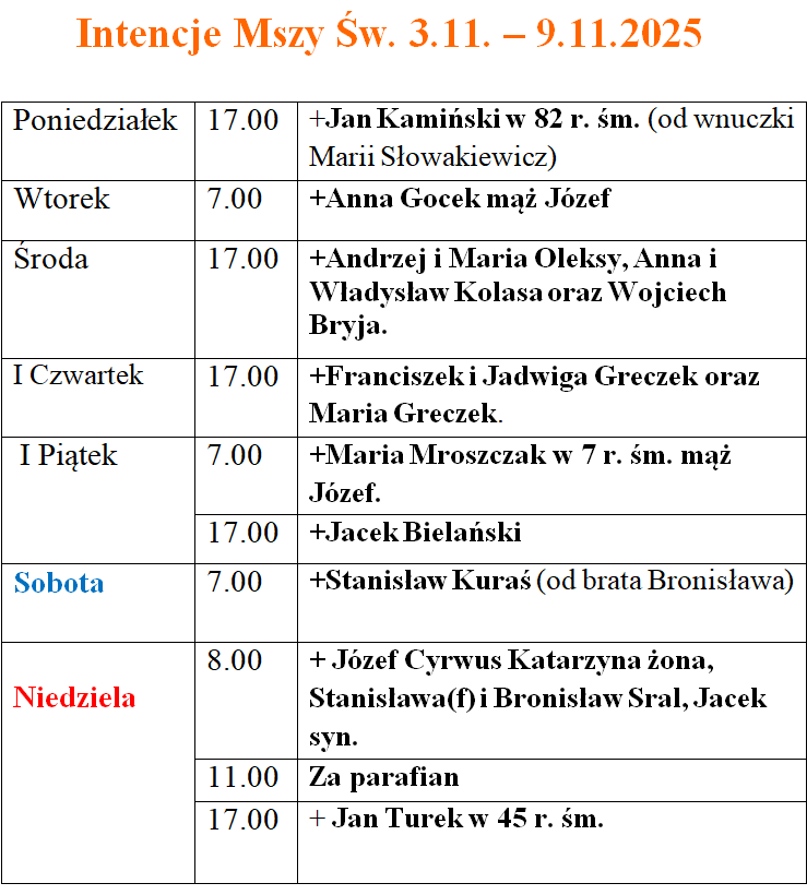 Strona Główna » Intencje Mszy św. » Intencje Mszy św. 3-9.11.2025