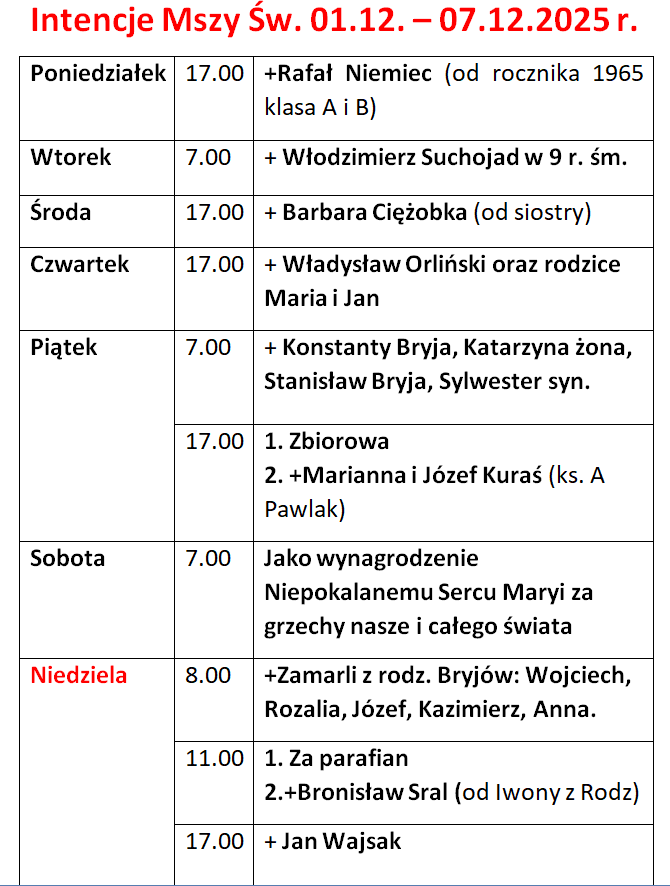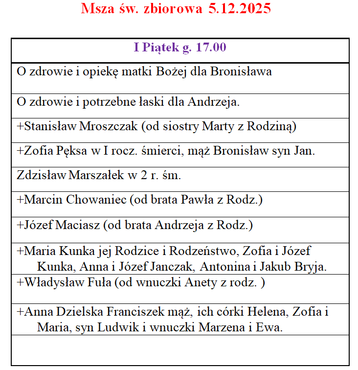 Intencje pogrzebowe za † Bolesława Kolasę (28.03.2023) Z tych intencji zostaną odprawione Gregorianki czyli 30 Mszy św. codziennie w dniach: Od 1 […]
