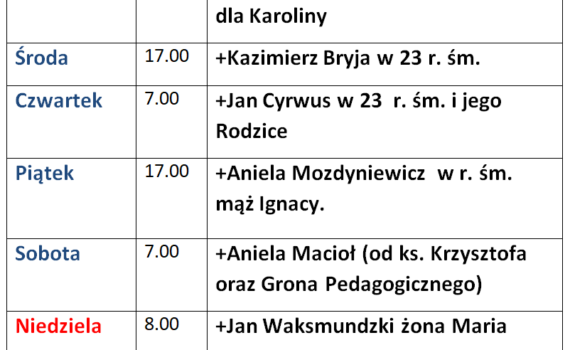O G Ł O S ZE N I A D U S Z P […] Ogłoszenia duszpasterskie Ogłoszenia duszpasterskie I NIEDZIELA WIELKIEGO POSTU – 22 II 2026