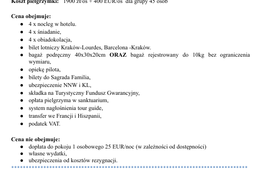 Ogłoszenia duszpasterskie Ogłoszenia duszpasterskie – Pielgrzymka do Lourdes i Montserrat 16-20.04.2026