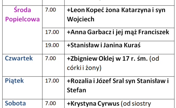 Intencje Mszy św. 16-22.02.2026