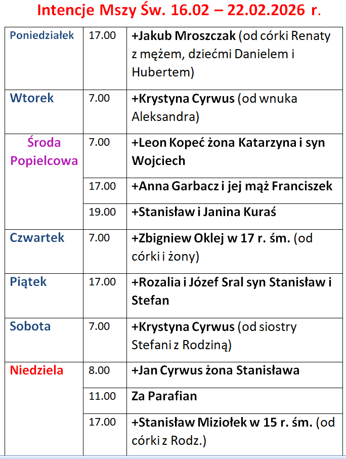 Opublikowano 18 sierpnia 2023 Intencje Mszy św. pogrzebowe za † Annę Garbacz Intencje pogrzebowe za † Annę Garbacz (20.06.2023) Po znalezieniu kapłanów którzy odprawią Msze Gregoriańskie będzie to podane na internecie. […]