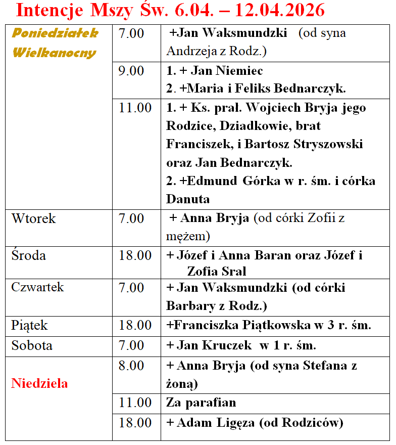 Ogłoszenia duszpasterskie – Poniedziałek Wielkanocny