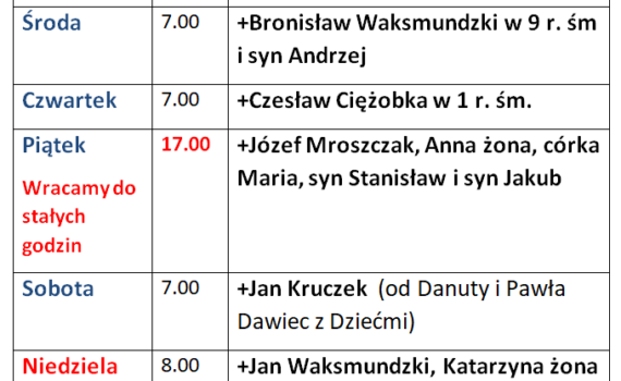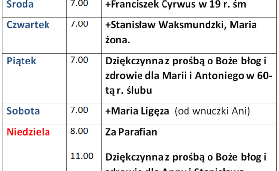 Intencje Mszy św. 19-25.01.2026