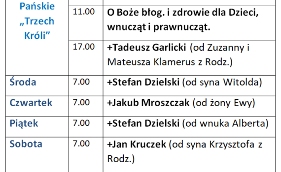 Intencje Mszy św. 12-18.01.2026